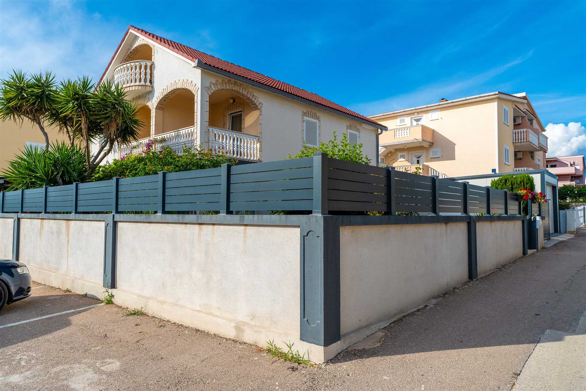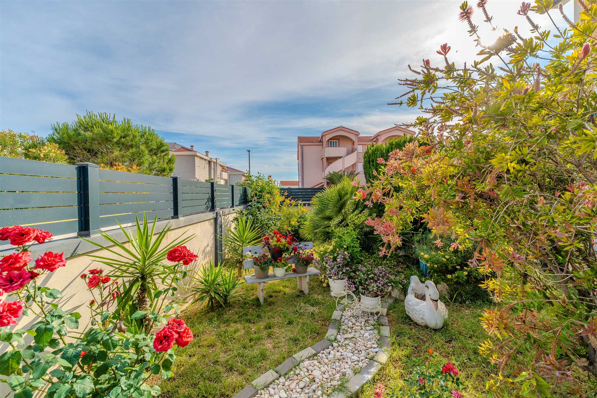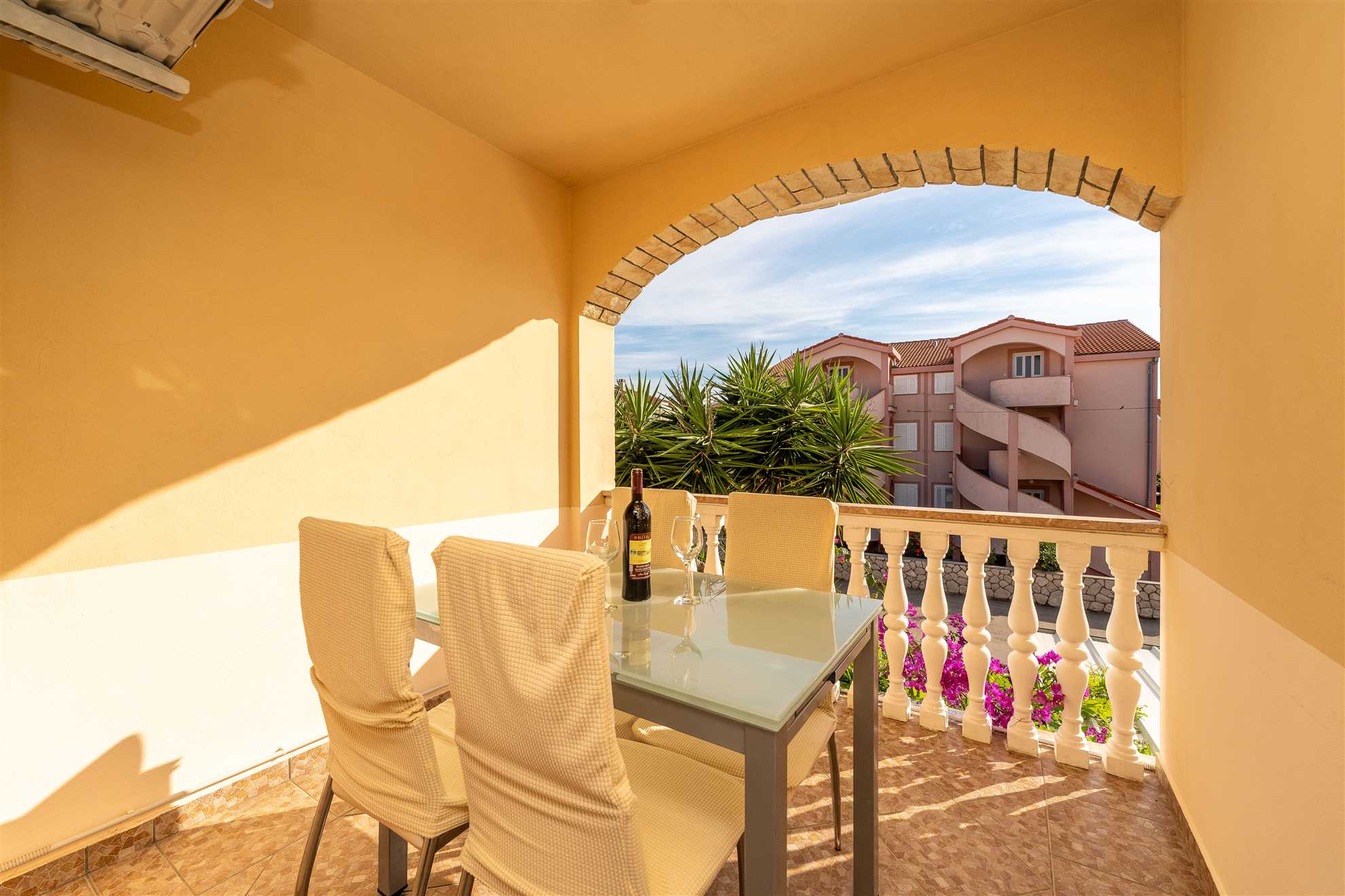 Esci e scopri la nostra oasi nel giardino, completa di un'accogliente area salotto e un barbecue, perfetta per cenare all'aperto e socializzare sotto il sole croato. Il bagno dell'appartamento incarna la raffinatezza minimalista, dotato di servizi di fascia alta per soddisfare le vostre esigenze personali.