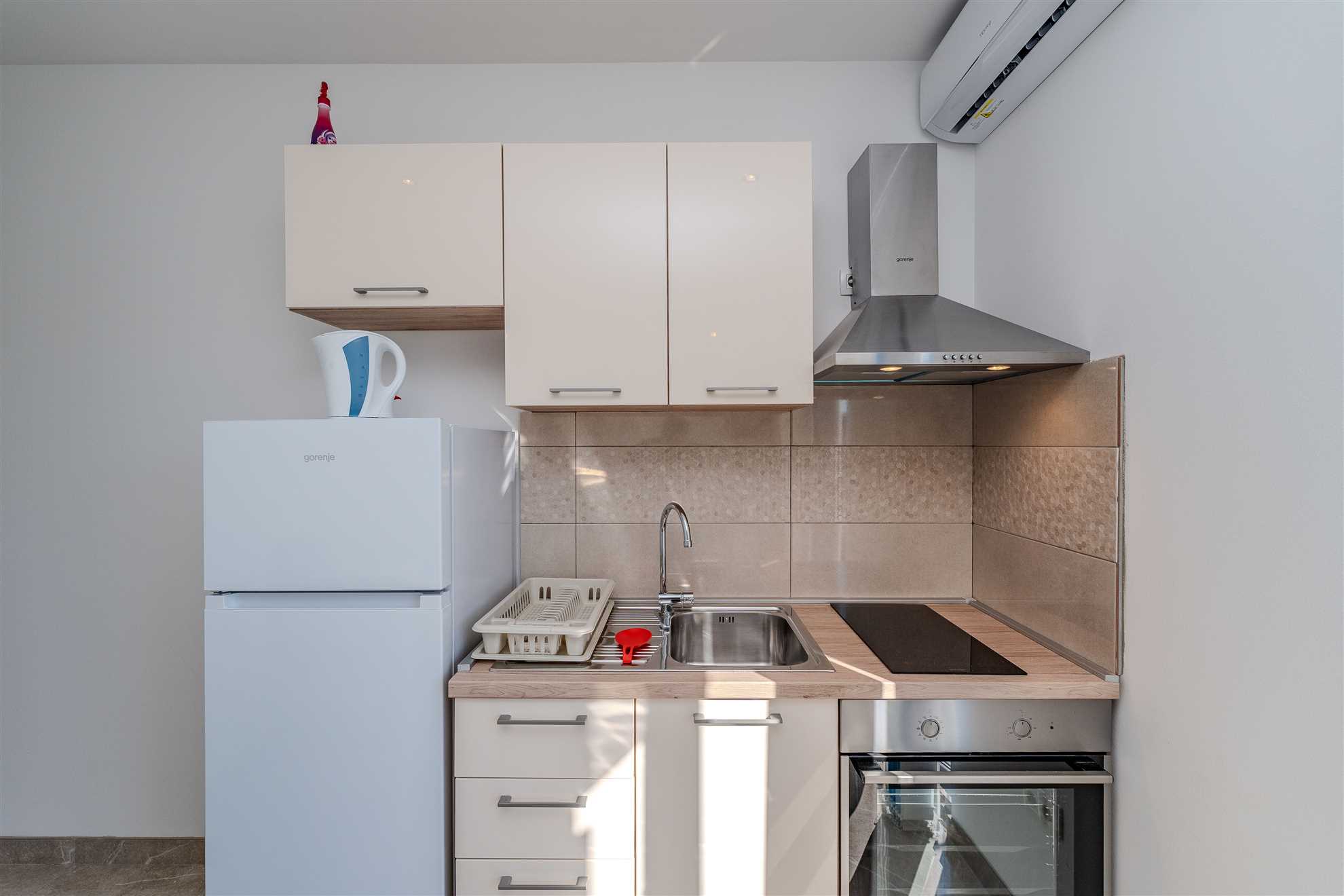 Questo appartamento è situato nella tranquilla zona rurale di Ninski Stanovi, a breve distanza dalla storica città di Nin e dalla vivace città di Zara. Può ospitare comodamente fino a 4 persone ed è dotato di aria condizionata per garantire un soggiorno confortevole, TV per l'intrattenimento, doccia in bagno, divano letto che può ospitare 2 persone, un'accogliente camera da letto con letto matrimoniale e un bagno zona cucina attrezzata con tavolo e sedie. L'appartamento vanta anche un balcone che offre una vista panoramica sul paesaggio rurale circostante.
